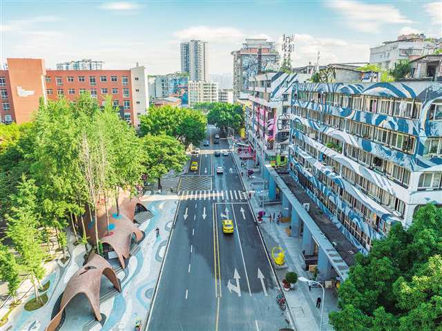 走进黄桷坪涂鸦街,画笔正点缀着老墙,曾经的旧巷在色彩中苏醒。通过“艺绘黄桷”项目,居民和艺术家们共同挥毫,将楼宇化作巨幅画布,让这里从“想涂就涂”变成了人人珍惜的艺术画廊。去年以来,九龙坡区坚持“景在城中、城在景中”,创新探索“三清两整三补”工作法,街道绿化更新、道路景观提升、城市地标焕新同步推进。桃花溪、彩云湖等重点区域系统整治,水清岸绿、岸线明亮,生态与景观交织成画。黄桷坪涂鸦艺术街区、主次干道绿化彩化工程,成为展现城市魅力的“城市名片”。