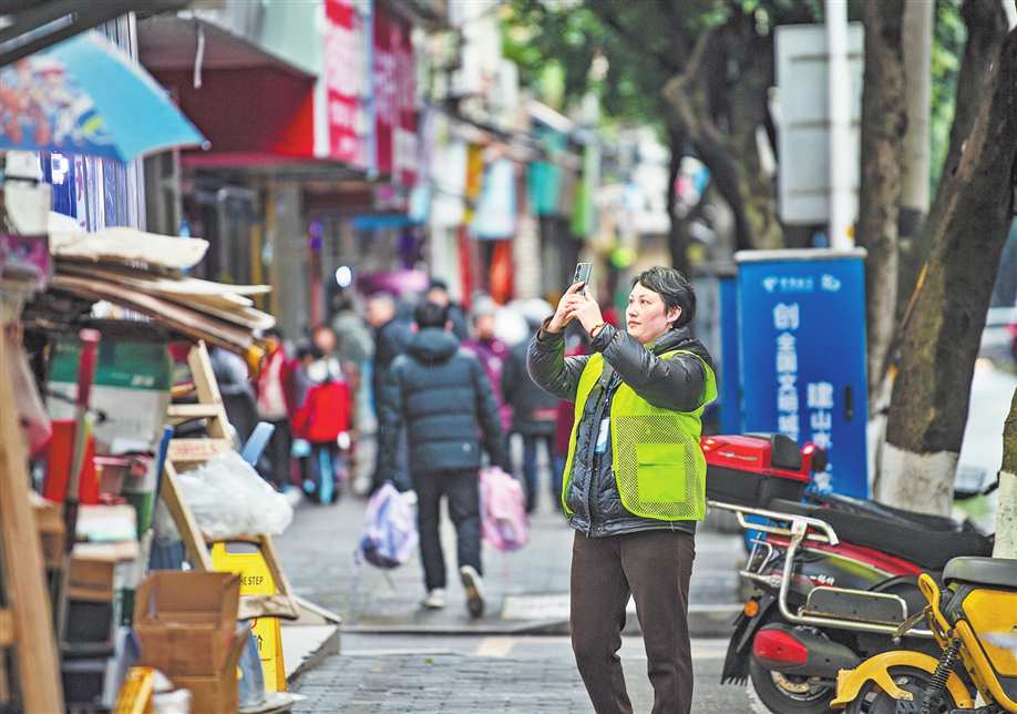 江津区城市管理网格员正在采集城市管理中的问题。记者 郑宇 摄\视觉重庆