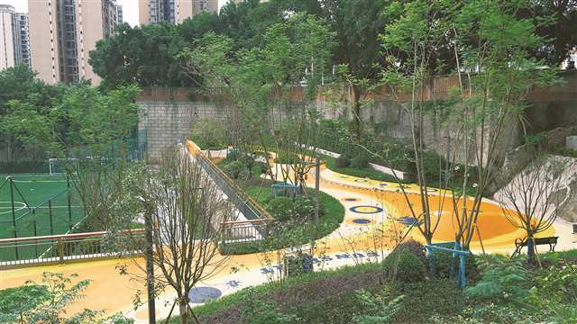 “以前这个山坡荒着根本没人来,没想到现在变成了漂亮的公园。”正在公园散步的刘女士笑着说,“每天吃完晚饭,我都会带着孩子来这里玩,他特别喜欢那个小秋千。”公园里,除了园林美景,还设有五人足球场、健身器材、儿童游乐设施等运动设施,满足了不同年龄层次群众的健身需求。