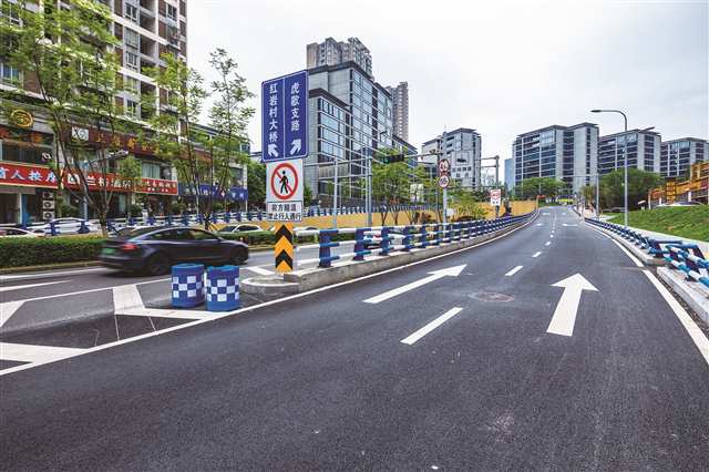 “我们通过压缩绿化带、优化路口渠化,既节省投资,又减少了对周边环境的影响。”据项目负责人介绍,目前,该方向的车道通行能力提升约50%,交叉口通行效率得到大幅提升,成为了渝中区“缓堵促畅”的典型案例。