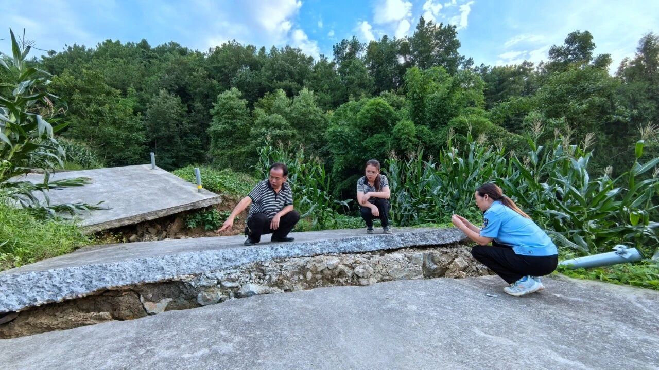 “不对头,可能要滑坡!”当天15时40分左右,肖玉态带队第二次排查至巴营社区七组柳高湾路段时,忽然发现水泥路面出现20多厘米宽的裂缝,路边草木和泥土也在晃动。