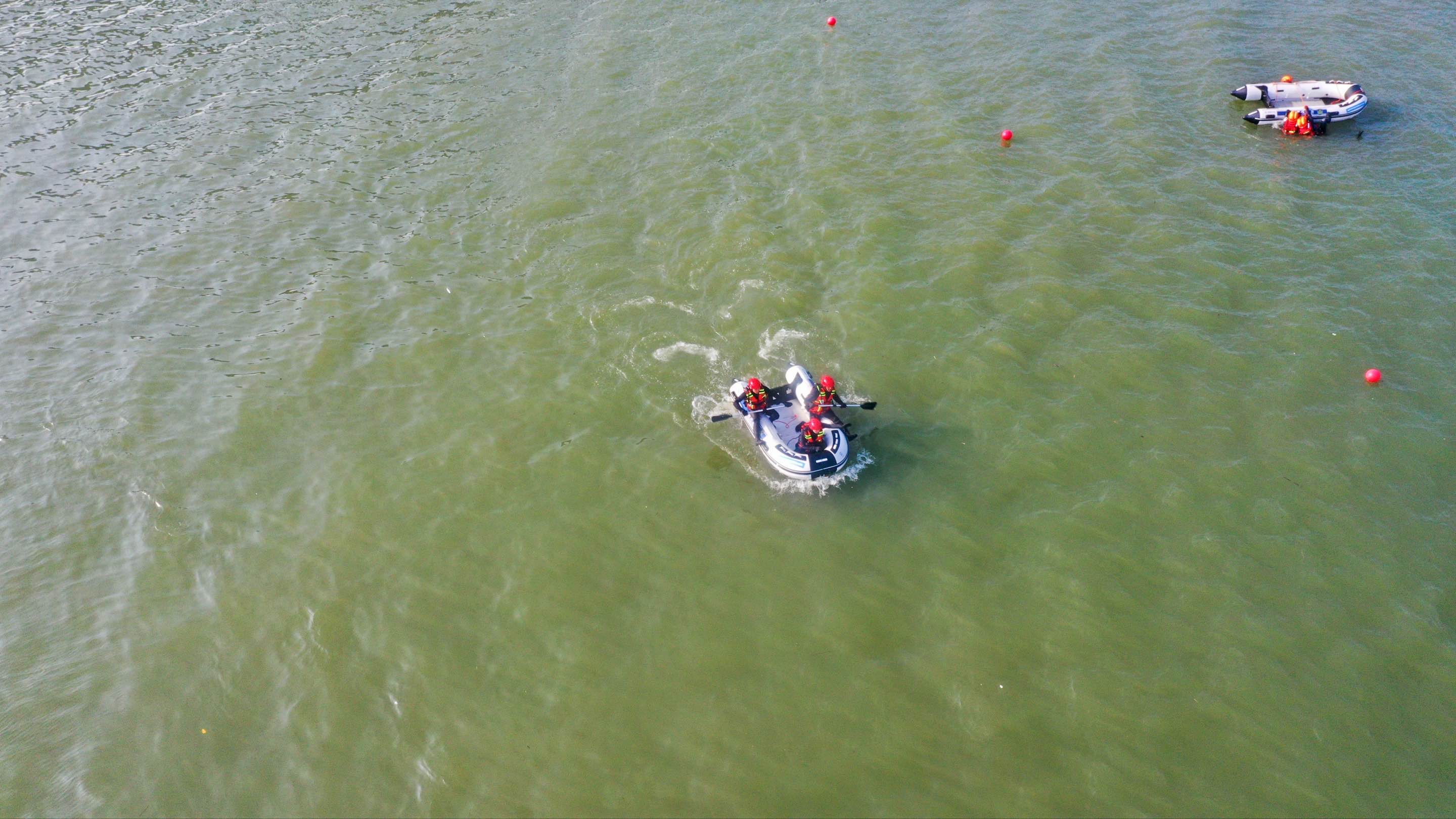 水上赛场的洪涝灾害实战救援更是扣人心弦。模拟船只侧翻的险情中,水面漂浮着障碍物,“被困人员”命悬一线。队员们沉着冷静,秉持“先稳后救、精准施策”的战术,驾驶橡皮艇灵活穿梭于障碍之间,稳稳靠近“遇险船只”。他们快速评估现场环境,熟练操作救援装备,小心翼翼地将“被困人员”转移至安全区域,整个处置过程规范有序、精准高效,被裁判赞为“教科书式救援”。