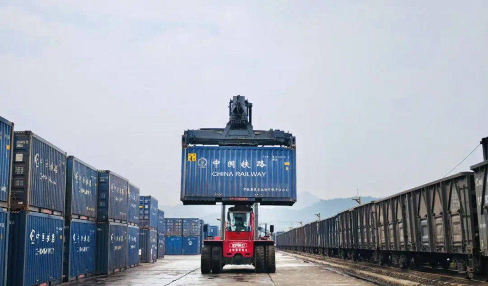 近日,重庆钢铁西部陆海新通道集装箱作业装卸现场一片忙碌,一场保障供应链效率的“攻坚战”正在进行——通过西部陆海新通道,近期重庆钢铁原料集装箱运抵量不断增加,实施高效卸载转运成为保障这条物流通道畅通的关键。