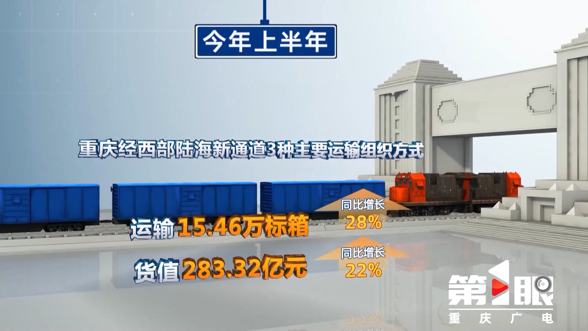 数据显示,今年上半年,重庆经西部陆海新通道3种主要运输组织方式运输15.46万标箱、同比增长28%,货值283.32亿元、同比增长22%。其中,铁海联运班列运输12.05万标箱,同比增长11%。跨境公路班车运输1.7万标箱,同比增长203%。国际铁路联运班列运输1.71万标箱、同比增长153%。目前,西部陆海新通道已通达全球127个国家和地区的571个港口。