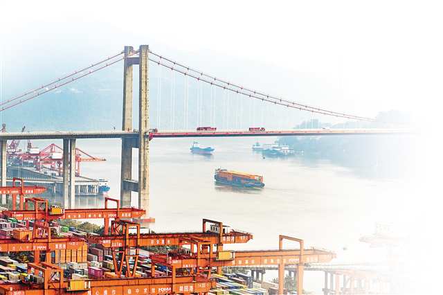 五大枢纽各展所长、协同发力,为重庆织就一条内陆开放的新动脉。去年,重庆“五型”枢纽货物吞吐量达1.2亿吨、同比增长13%,占全市集装箱吞吐量90%以上。