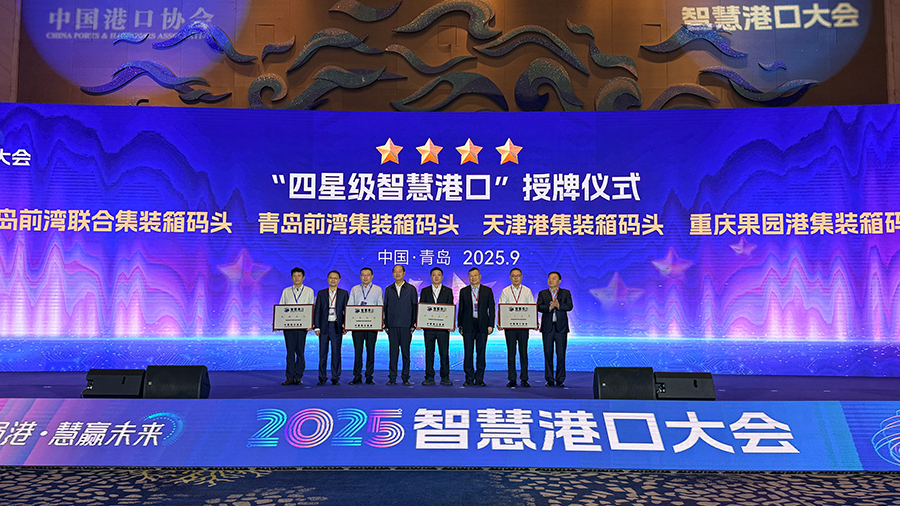 9月24日,在“2025智慧港口大会”上,重庆果园港集装箱码头被授予“四星级智慧港口”。新华网发(受访者供图)