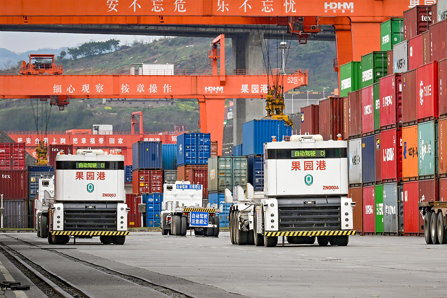 “目前,无人驾驶集装箱卡车日均作业量已达240个标准箱,运营成本显著低于人工驾驶的集装箱卡车。”重庆果园集装箱码头有限公司相关负责人表示,无人驾驶集装箱卡车实现了“厘米级”定位与全流程自动作业,并与智能车辆管理、远控场桥高效联动,形成“运输—装卸”全链路无人化作业模式,大幅提升港口运营效率。