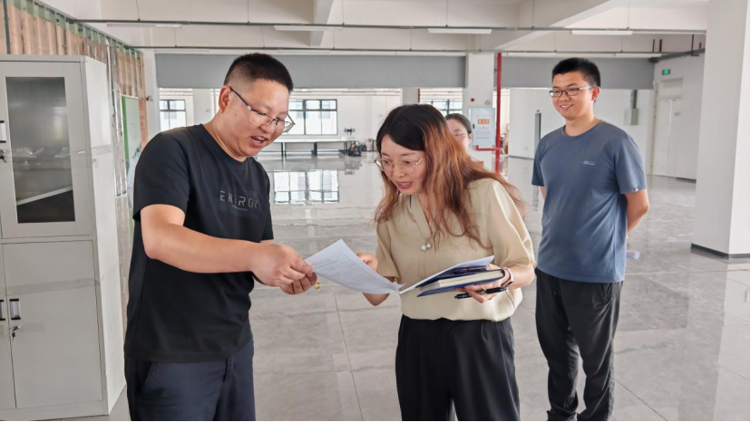 代办专员为企业提供“一对一”服务,上门指导极达环境科技(重庆)有限公司准备办理建筑工程竣工验收资料。受访者供图