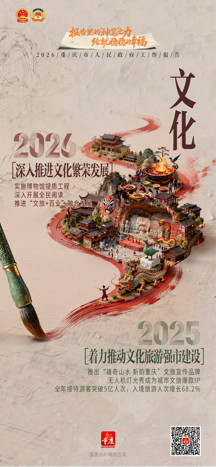 “神笔”绘巴渝,报告见幸福。让我们跟随灵动笔触,看2026重庆市政府工作报告中重庆澎湃向上的活力,感受“稳稳的幸福”!