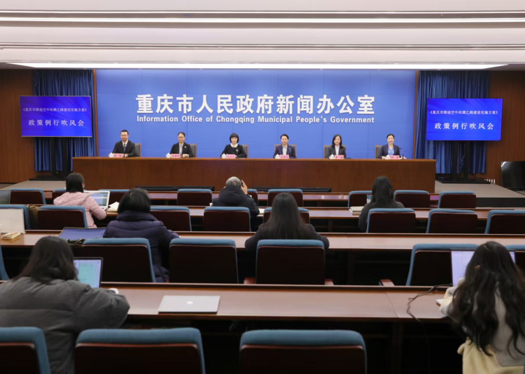 【傅倩倩】15:02:51 重庆地处“一带一路”和长江经济带的联结点,是全国7个区位门户复合型国际航空枢纽之一。为深入贯彻落实习近平总书记关于空中丝绸之路建设的重要指示精神,进一步织密国际航线网络,提升口岸服务能力,发展壮大航空产业,深化国际交往合作,奋力打造内陆开放综合枢纽,近日,市政府办公厅印发了《重庆市推进空中丝绸之路建设实施方案》。《实施方案》提出到2030年,重庆在飞国际(地区)航线达70条以上,年国际(地区)旅客、货邮吞吐量分别达到500万人次、30万吨,空中丝绸之路建设取得实质性进展。围绕这一目标,提出了五个部分、14条工作举措。下面我向大家作简要介绍。