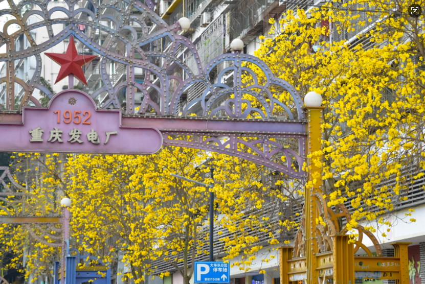 据了解,黄花风铃木因其花形酷似风铃花色金黄璀璨而得名,一般在春季3至4月开花,花期约10至15天,眼下正是最佳观赏期,赏花之余,还可顺路打卡交通茶馆、重庆当代美术馆、军哥书屋等特色点位,一站式体验黄桷坪的艺术烟火气。