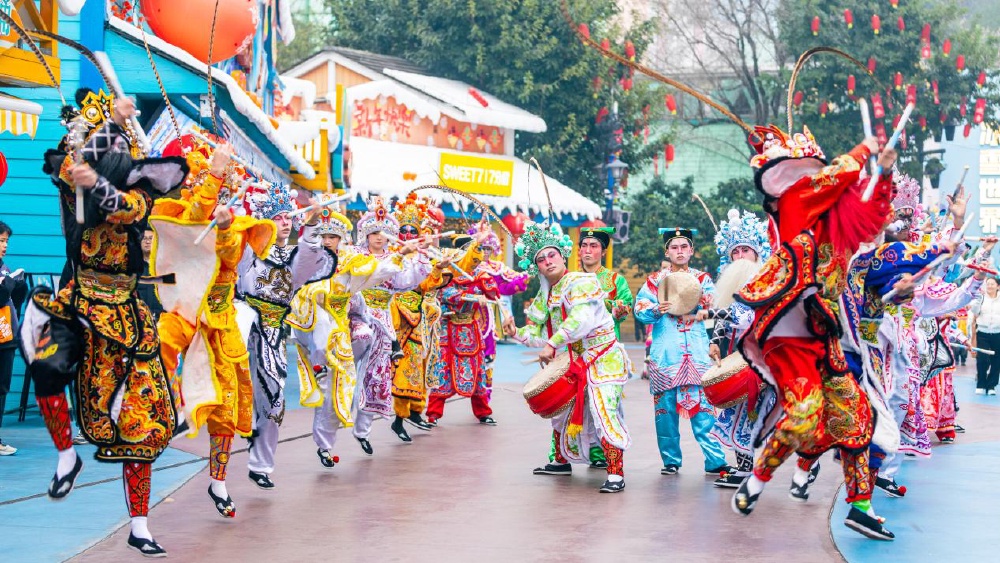 从正月初一开始,重庆欢乐谷将为游客献上一场精彩纷呈的民俗文化盛宴。川渝传统绝活变脸玩出新花样,不仅有吐火,更将为游客首次展现八头变脸绝技。潮汕英歌舞、福建游神与电音三太子将同场亮相,三种火爆全网的民俗在重庆欢乐谷实现联动。此外,还有皮影戏、木偶戏等精彩演出,一站式欣赏来自全国各地不同的民俗艺术,感受传统文化的魅力。