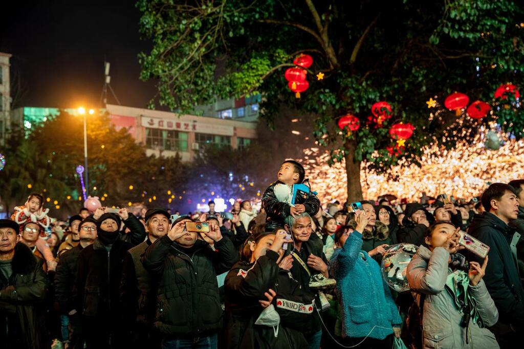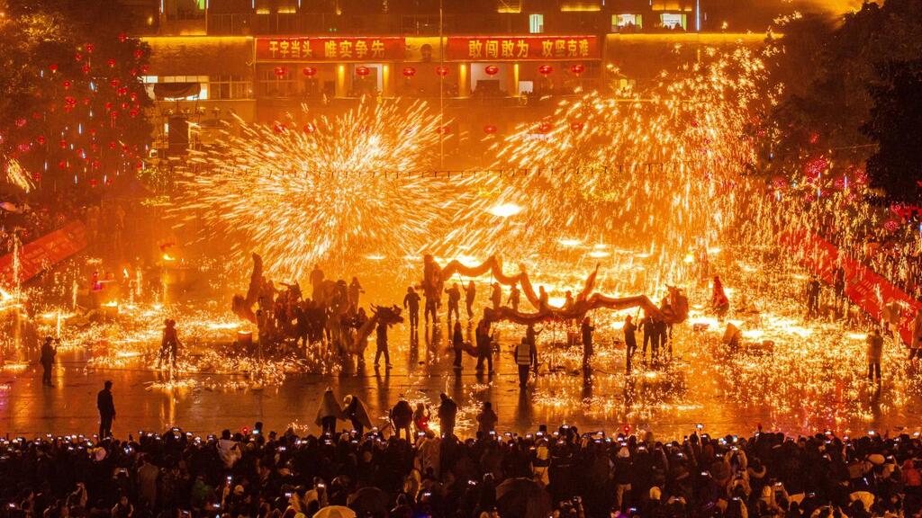 铁花与龙影交织间,千架无人机破空而起,为白沙夜空勾勒出绚丽的轮廓,与地面的火树银花交相辉映,带来传统与现代融合的视觉震撼。