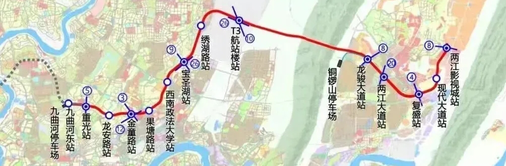 该线路全线通车后,将串联起大学城、井口工业园、礼嘉智慧城、欢乐谷等重要功能区以及科学城高铁站、江北机场、复盛高铁站等主要枢纽。市民从曾家去往两江影视城,时间将控制在一小时内。