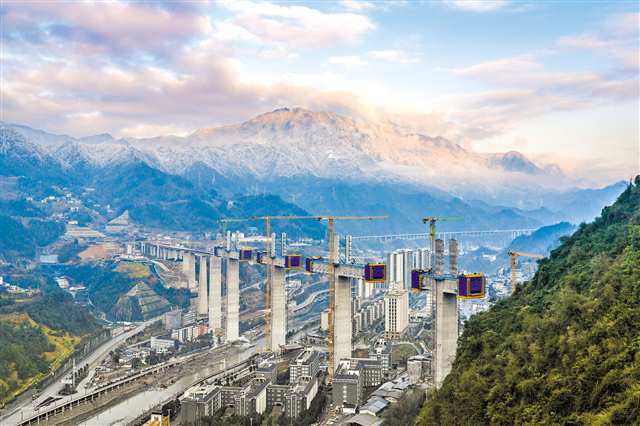 近日寒潮来袭,西渝高铁控制性工程——城口任河特大桥建设现场仍旧一片繁忙景象。该桥全长1180.52米,主墩最高达132米,采用全国首创的桥梁与全封闭声屏障一体化设计。目前,桥梁下部结构已完成97%,上部结构完成53%,工人们正有序进行钢筋安装、混凝土浇筑等作业,全力冲刺9月主体完工目标。