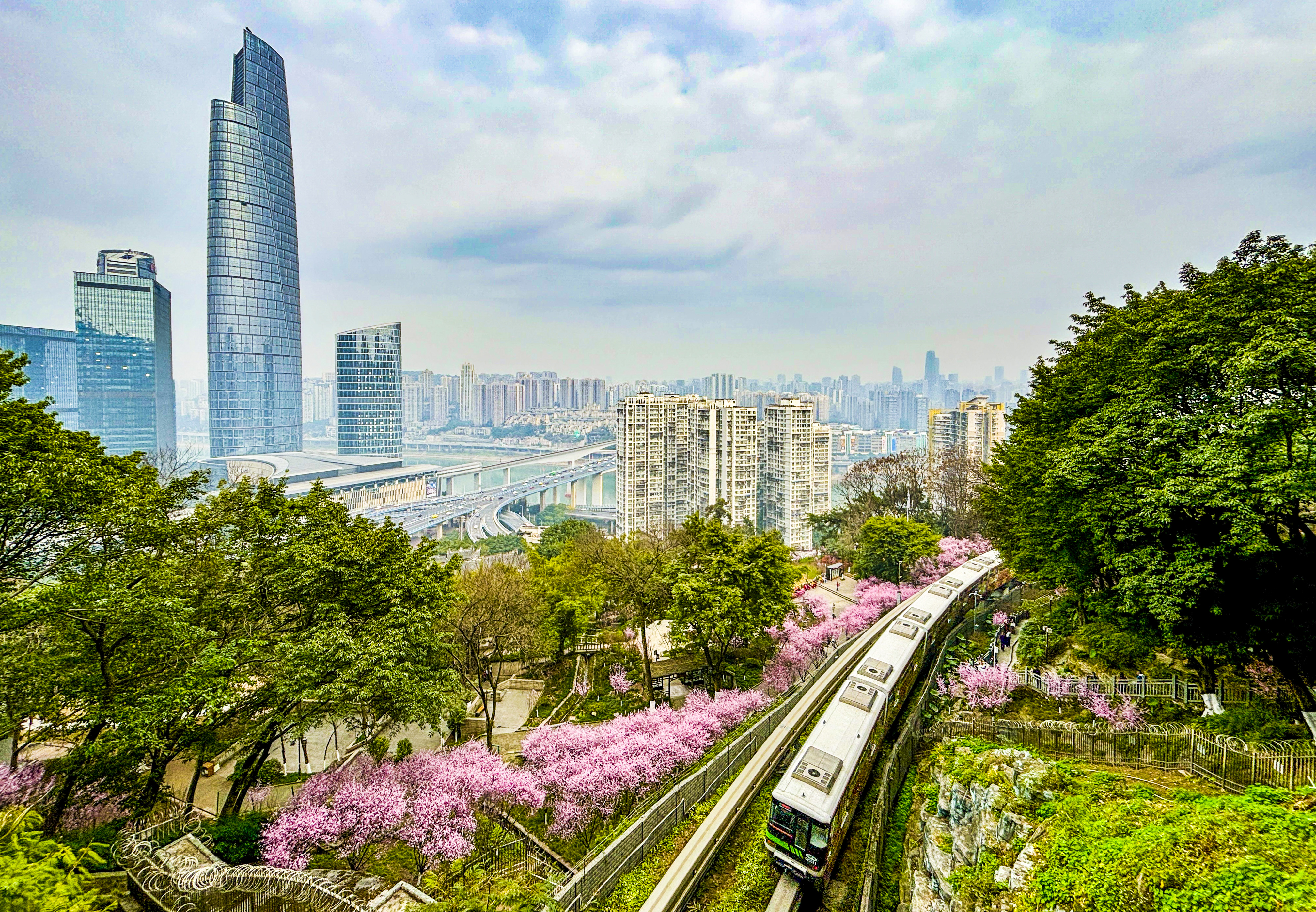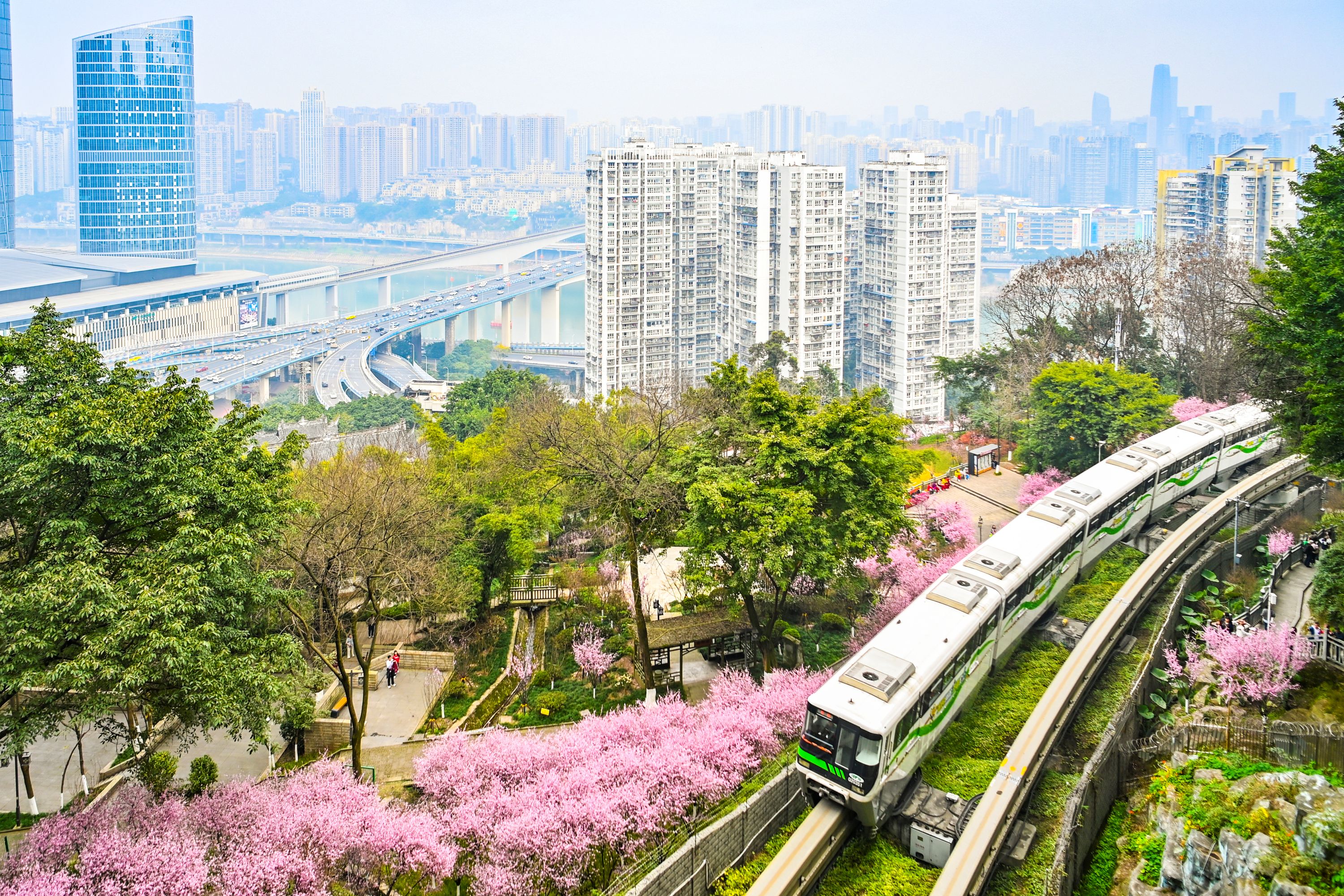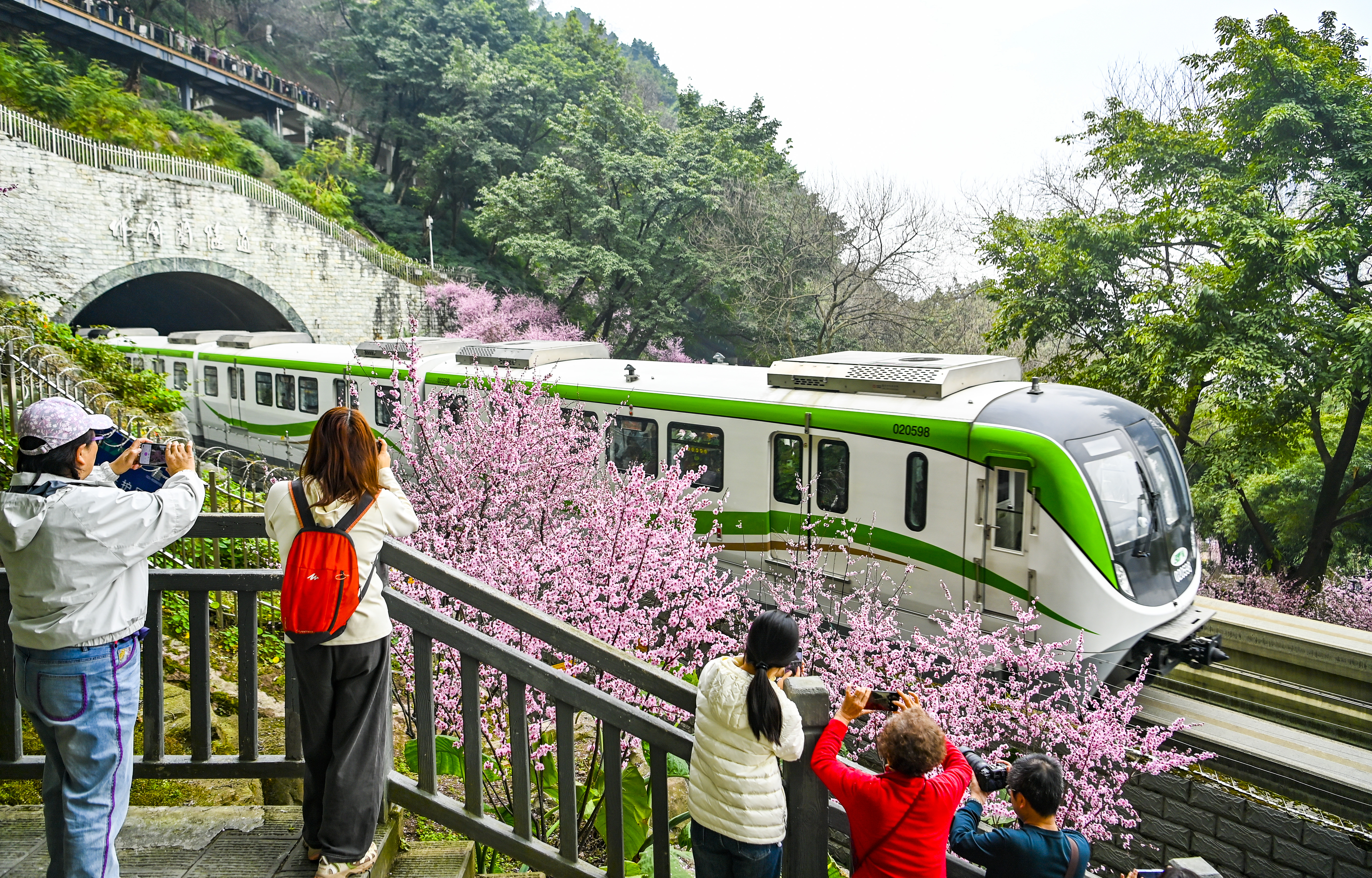 作为热门打卡地,每年二月春暖大地,重庆轨道交通2号线佛图关段“开往春天的列车”都会如约而至,沿线大片美人梅娇艳绽放,吸引了各地大量游客前来打卡感受重庆的美景。