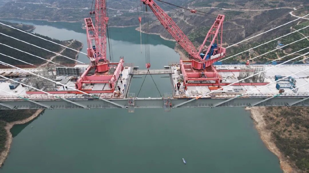 大溪河特大桥最后一段钢混组合梁精准合龙