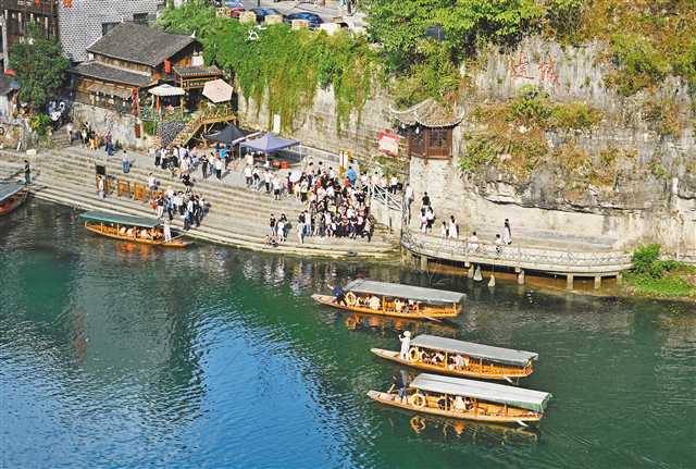 支撑增长极的是一系列新突破——改革创新体制机制,各要素市场逐渐向文旅发展倾斜;倾情打造精品景区,A级景区达33家,5A级景区建成3家,今年有望再新增1家;全面推进文旅融合,《濯水谣》《怀清台》《娇阿依》《印象武隆》等大型实景旅游演艺项目相继推出,非遗与旅游多样化融合取得新进展;精心组织宣传营销,策划打造了10余条跨区精品线路,每年开展20余次联合营销;全力改善基础设施,黔江武陵山和武隆仙女山支线机场,若干条高速、铁路相继通车,实现旅游快集快散。