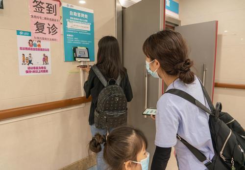 ▲2021年9月29日,重医附属儿童医院,预约就诊的患者在打卡机上打卡签到。记者 崔力 摄视觉重庆