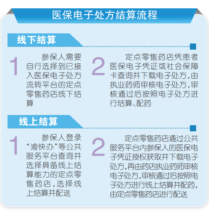 据该负责人介绍,医保电子处方结算分为线下结算和线上结算两种情形(见图示),“无论是哪种情形,药店执业药师都要审核电子处方,以确保患者用药安全”。