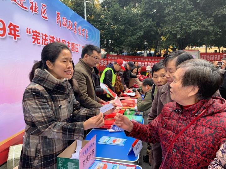 12月7日,2019年全国“宪法宣传周”活动结束,重庆市各区县均开展了相关的普法活动。此前,由重庆市民政局、重庆市司法局指导,重庆市渝北区民政局等单位主办的“宪法进社区主题日”宣传活动在回兴举行,现场设立法律、低保、婚姻、殡葬、养老、居民自治、儿童福利等咨询台,接受社区居民咨询300余次,发放宣传资料5000余份。