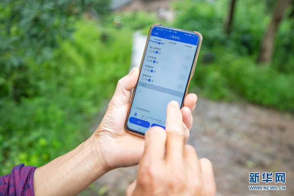 7月10日,在重庆市云阳县凤鸣镇清江村,地质灾害群测群防员上传滑坡点巡查记录。
