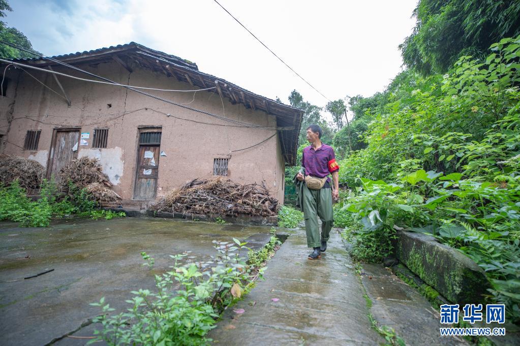 7月10日,在重庆市云阳县凤鸣镇清江村,地质灾害群测群防员对蔡家坝滑坡点进行巡查。