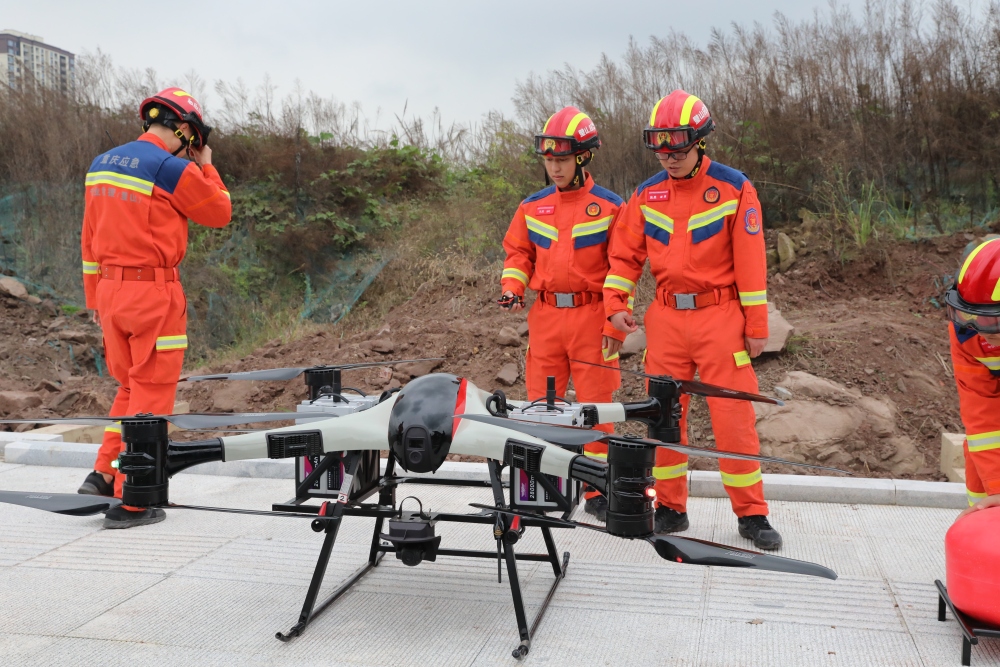 重庆市专业应急救援璧山支队现场操作高清晰侦查无人机。璧山区应急管理局供图