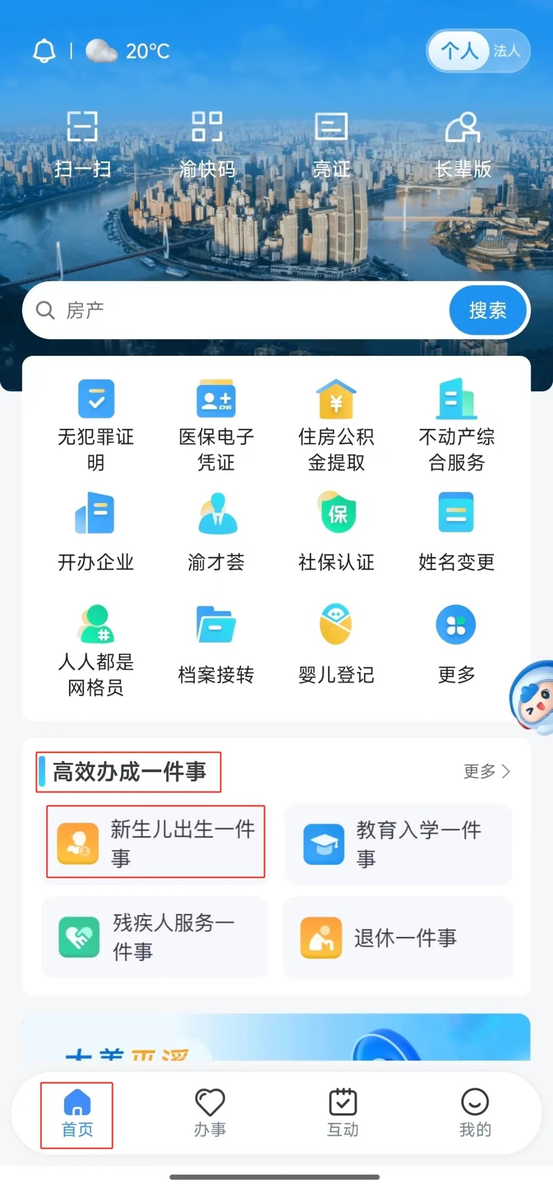 本市户籍新生儿首次参保可以通过“渝快办”手机App“新生儿出生一件事”进行办理,办理路径如下: